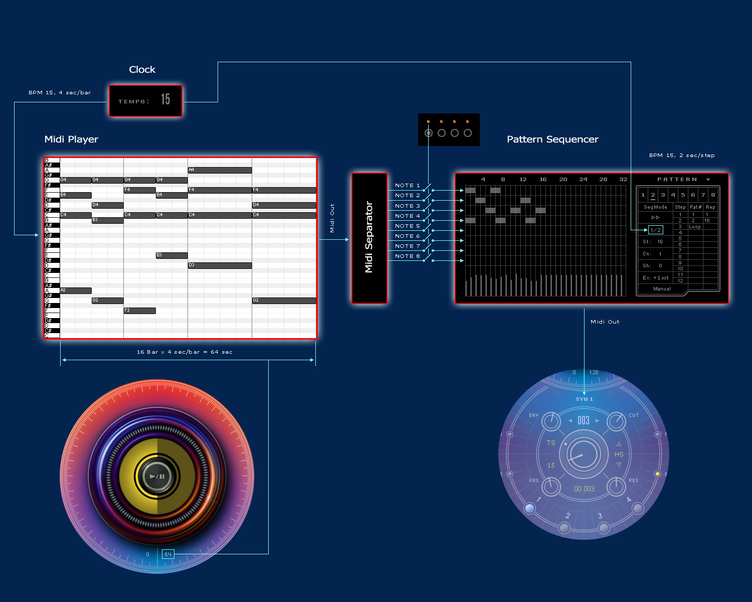 You can set MIDI automation by Right-clicking on most Knob (From the left side) controls and choosing Learn, Unlearn or Edit. The Edit assignment allows you to manually set the controller. For the time being, only Midi Automation CC can be transmitted via the MIDI channel (manage some knobs and buttons.. for example, the start button and layer levels).